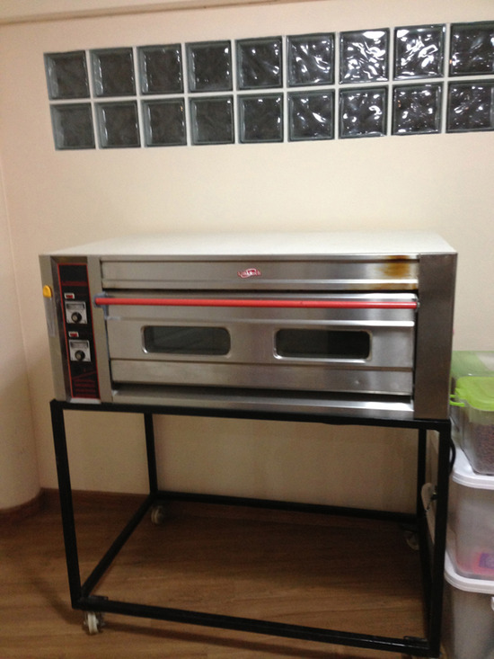 ขนาดของเตาอบ 122.5x77x53 ซม. และมีฐานโครงสร้างเหล็กแบบมีล้อ เคลื่อนย้ายได้ สูง 65 ซม.