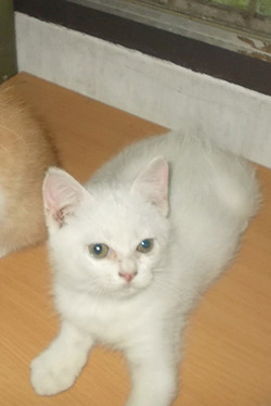 ลูกแมวอายุสองเดือนกว่าๆ สีขาวล้วน 1ตัว