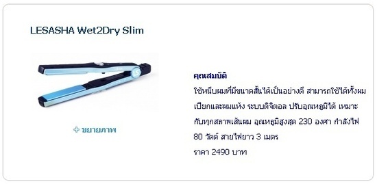 ขาย Le'Sasha Wet2Dry Slim ของใหม่เพิ่งซื้อไม่กี่วัน สภาพ 99.99เปอร์เซ็นไม่มีตำหนิ พร้อมกล่องอุปกรณ์ครบเหมือนมือ1และซีดีวิธีการทำ ความร้อนสูงถง230องศา ระบบไอน้ำไม่ทำให้ผมเสียค้ะ ประกัน1ปี ขายเพราะดัดผมมาไม่เหมาะกับผมดัด 1790 ส่ง EMS ฟรี สนใจline : alohastitchhh