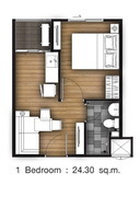 ห้องเลขที่ 603 อยู่ชั้น 6 พื้นที่ 24.30 ตารางเมตร 1 ห้องนอน 1 ห้องน้ำ