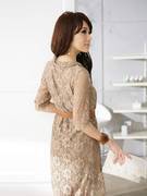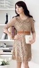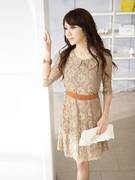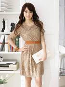 **พร้อมส่ง** แฟชั่นเกาหลี เดรสผ้าลูกไม้ สีแอพริคอท ไซส์ 3XL พร้อมเข็มขัด (อก 44)