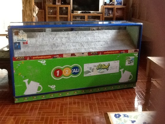 ขายตู้โชว์โทรศัพท์มือถือ ตู้มี 3 ชั้น ชั้นบนมีชั้นวางโชว์มือถือ ปูผ้าสีขาว ชั้นล่างเก็บของได้เยอะ ติดโลโก้ วันทูคอล ขอบสีน้ำเงิน หลอดไฟแนวนอน 2 ดวง แนวตั้ง 2 ดวง ตู้มีล้อเลื่อน ประตูตู้เป็นกระจกเงาสะท้อนแสง มีประตู 4 บาน เลื่อนง่าย ขนาดตู้ 50x200x110 cm. สภาพดีพร้อมใช้งาน สนใจดูสินค้าแล้วค่อยตกลงได้