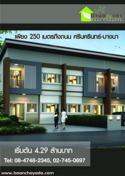 ขายบ้านใหม่ ทาวน์โฮม-ออฟฟิศบ้านใหม่ย่านบางนาบนถนนศรีนครินทร์ห่างจากถนนศรีนครินทร์ -บางนาเพียง 250 เมตร ใกล้รถไฟฟ้า ชีคอน เซ็นทรัล พาราไดซ์ สไตล์ทาวน์โฮม-ออฟฟิศ ราคาไม่แพง บ้านยกสูงน้ำไม่ท่วม โครงสร้างแบบใหม่ปลอดภัยจาก แผ่นดินไหว บ้านชญาดา www.baanchayada.com * บ้านทาวน์โฮมออฟฟิศ สไตล์บ้านเดี่ยว ดีไซน์โปร่งโล่ง ทุกพื้นที่ใช้สอยภายในบ้านกว้างขวาง * โครงสร้างบ้านแข็งแรงและออกแบบพิเศษให้ปลอดภัยสูงสุดจากการสั่นสะเทือนของแผ่นดินไหว * ตัวอาคารบ้านยกสูงมาก เพื่อให้ปลอดภัยหรือบรรเทาความเสียหายจากภัยภาวะน้ำท่วมกรุงเทพฯในปัจจุบันและอนาคต * ห้องนอนทุกห้อง Style Master Bedroom เนื้อที่หลังบ้านที่กว้างขวางสามารถทำเป็นสวนหย่อมได้ * ทำเลติดถนนใหญ่ ไปไหนก็สะดวกใกล้รถไฟฟ้า BTS อุดมสุข และ ทางด่วนบางนา และ วงแหวนรอบนอก * ห่างจากศูนย์ธุรกิจและศูนย์การค้าไม่ถึง 1 กิโล เช่น เซ็นทรัลบางนา,ซีคอน,พาราไดซ์ * เป็นโซนพื้นที่สีเขียวซึ่งปลอดภัยจากการตั้งโรงงาน และ มลพิษต่างๆ * ไม่มีค่าส่วนกลางตลอดไป หน้ากว้าง 6 เมตร ตัวอาคารลึก 10 เมตร จอดรถ 10 เมตร พื้นที่ใช้สอยขนาด 180 ตรม. 4 ห้องนอน 3 ห้องน้ำ 1 ส่วนรับแขก 1 ห้องรับประทานอาหาร 1 ห้องครัว ส่วนซักล้างที่กว้างขวาง พร้อมที่จอดรถคันใหญ่ได้ 4 คัน ********************************************************************************* ราคาไม่แพงอย่างที่คิด บนเนื้อที่ดิน 33-50 ตารางวา เข้าชมได้ที่ http://www.baanchayada.com (“คลิกเลยค่ะ”) สนใจติดต่อ : คุณฝน โทร : 08-4748-2345 ,02-745-0697 Email : [email protected]