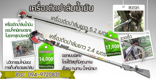 1. เครื่องตัดปาล์มขนาด ความยาว 2.8-3.1 เมตร เป็นเครื่องขนาดก้านตัด 2 ท่อน ใช้กับปาล์มอายุไม่เกิน 10 ปี มีใบเคียวและใบเสียม อย่างละ 1 เล่ม ราคาโปรโมชั่นพิเศษ 14,000 บาท