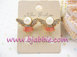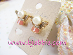 พร้อมส่งต่างหูเกาหลี นางฟ้าสีทองลงยาสีชมพูหวานประัดแบเพชร สวยน่ารักมากค่ะ