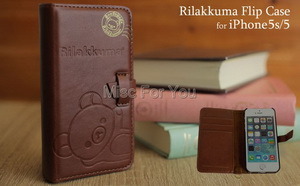 เคสมือถือแบบไดอารี่พับ หนัง PU ลาย Rilakkuma น่ารัก สำหรับไอโฟน 5/S ===ติดต่อเราได้ที่===