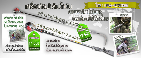 เครื่องตัดปาล์มน้ำมันประสิทธิภาพสูง ออกแบบพิเศษ โดยใช้วัสดุที่มีคุณภาพ ทนทาน น้ำหนักเบา สามารถตัดปาล์มและตัดแต่งทางใบได้ดีเยี่ยม เป็นการเพิ่มผลผลิตและประสิทธิภาพในการเก็บเกี่ยว ประหยัดต้นทุนทั้งด้านแรงงานและเวลา