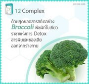 * 12 Complex ทเวล คอมเพล็กซ์ อุดมไปด้วยสุดยอดสารสกัด อย่างเช่น Broccoli พืชผักใบเขียว ราชาแห่งการ Detox สารพิษ และของเสีย ออกจากร่างกาย
