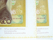 ธนบัตรที่ระลึกเนื่องในอภิลักขิตสมัยมหามงคลวันราชาภิเษกสมรส และวันบรมราชาภิเษกครบ ๕๐ ปี UNC สภาพใหม่ไม่เคยผ่านการใช้งานจำนวน2ฉบับ หมายเลขเรียงกัน ๙ธ๓๕๑๒๓๒ และ ๙ธ๓๕๑๒๓๓ ขาย 2,500 ส่ง EMS ฟรี