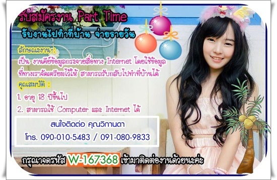 | คำค้น: | part time | งานพิเศษ | รายได้เสริม | อาชีพเสริม | | ||