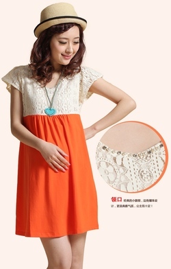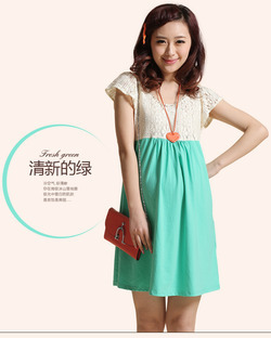 ร้าน ชุดคลุมท้อง mommomdress จำหน่ายชุดคลุมท้องแฟชั่นแขนลูกไม้ ผ้าฝ้าย Size L สีเขียว พร้อมส่ง