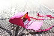 - ด้านข้างกระเป๋ามีสาย พร้อมห่วงโลหะ สำหรับเกี่ยว เช่น พวงกุญแจ