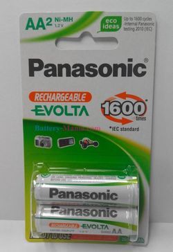 ถ่านชาร์จPanasonic Evolta คายประจุช้า ขนาด AA 2050 mAh 2 ก้อน ของแท้ ชาร์จได้ 1600 ครั้ง