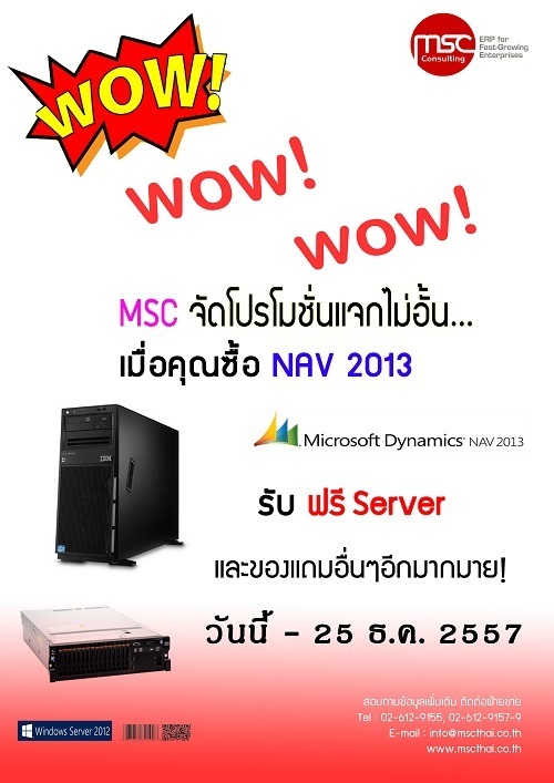 MSCแจกไม่อั้น...เพียงคุณซื้อ Microsoft Dynamics NAV 2013 รับฟรี! Server