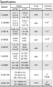 Flowmeter WELL Z-500 Series MODEL Z-5008 0.1-1GPM/0.5-4LPM 1/2" Z-5008 0.2-2GPM/1-7LPM 1/2" Z-5008 0.5-5GPM/1.8-18LPM 1/2" Z-5008C 0.1-1GPM/0.5-4LPM 1/2" Z-5008C 0.2-2GPM/1-7LPM 1/2" Z-5008C 0.5-5GPM/1.8-18LPM 1/2" Z5015 0.25-2.5GPM/1-10LPM 1/2" Z5015 0.5-5GPM/1.8-18LPM 1/2" Z5015 0.8-8GPM/3-30LPM 1/2" Z5025 0.8-8GPM/3-30LPM 3/4" Z5025 1-10GPM/4-40LPM 3/4" Z5032 1.2-12GPM/5-50LPM 1" Z5032 2-20GPM/8-80LPM 1" Z5032 2.5-25GPM/10-100LPM 1" Z5050 2.5-25GPM/10-100LPM 2" Z5050 5-45GPM/20-180LPM 2" Z5050 7-70GPM/25-250LPM 2" Z5065 25-110GPM/80-400LPM 2.1/2" Z5065 40-160GPM/150-650LPM 2.1/2" Z5065 50-250GPM/200-1000LPM 2.1/2"