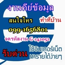 หน้าที่รับผิดชอบ : คีย์ข้อมูลของทางบริษัท ซึ่งทางเราจัดเตรียมข้อมูลไว้ให้แล้ว ส่งงานโดยใช้อินเตอร์เน็ต สามารถรับงานไปทำที่บ้านได้ สอนงานให้ก่อนรับงานค่ะ