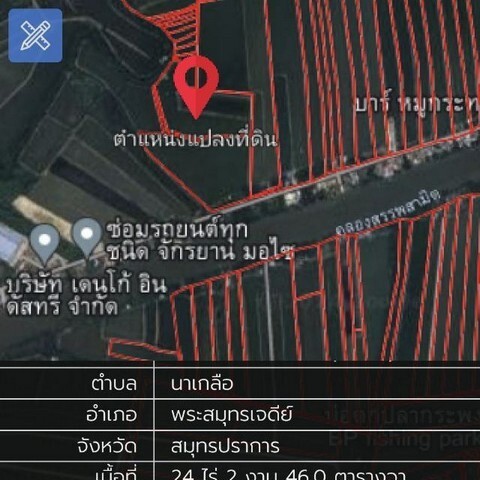 ขายที่ดินเปล่า พระสมุทรเจดีย์ สมุทรปราการ ขนาด 24 ไร่ 2 งาน 46 ตร.วา ที่สวยติดคลอง