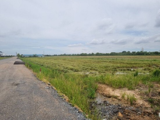 ถนนกว้าง10เมตรรถใหญ่เข้าสะดวก เหมาะสร้างโรงงาน ใกล้ตลาดปองพล ถนนสุวินทวงศ์ บางนาตราด