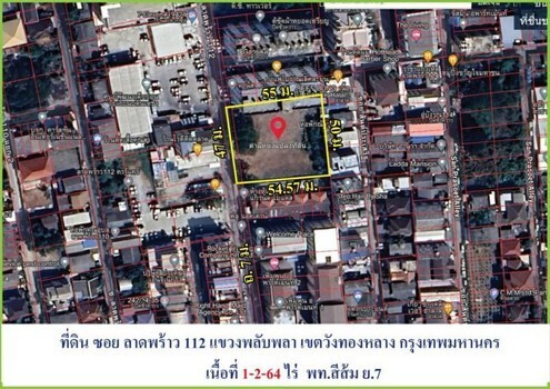 ขายที่ดินต่ำกว่าราคาตลาดลาดพร้าว 112 เนื้อที่1 - 2 - 64 ไร่ ทะลุซอยรามคำแหง 43/1 แขวงพลับพลา เขตวังทองหลาง กรุงเทพมหานคร 10310