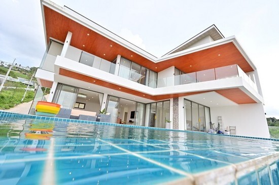 Off-plan pre-sale pool villa for sale 2 floors usable area 990 sq.m Bophut open sea view overlooking Koh Phangan Luxuriously decorated.