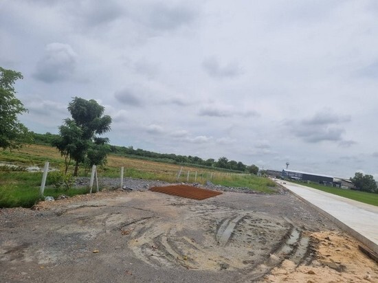 ถนนกว้าง10เมตร รถใหญ่เข้าสะดวก เหมาะสร้างโรงงาน ใกล้ตลาดปองพล ถนนสุวินทวงศ์ บางนาตราด
