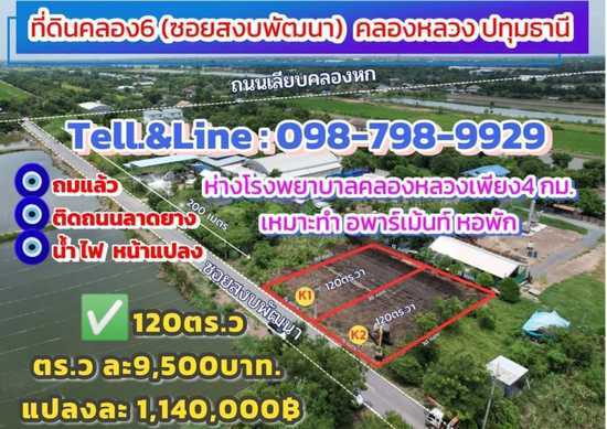 | ที่อยู่: | ที่ดินคลอง6(#ซอยสงบพัฒนา) คลองหลวง ปทุมธานี | ||