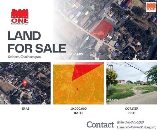 ขาย ที่ดิน 1 ไร่ ถนน2ด้าน ต.โสธร อ.เมืองฉะเชิงเทรา