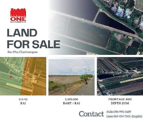 ขาย ที่ดินเปล่า แปลงสวย ต.เกาะไร่ บ้านโพธิ์ ฉะเชิงเทรา