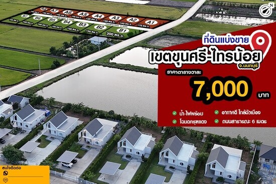 ขายที่ดินขุนศรี-ไทรน้อย น้ำ-ไฟฟ้า 3 เฟสพร้อมแปลงสวย เหมาะสร้างบ้านวัยเกษียณ 6,500/ตรว.