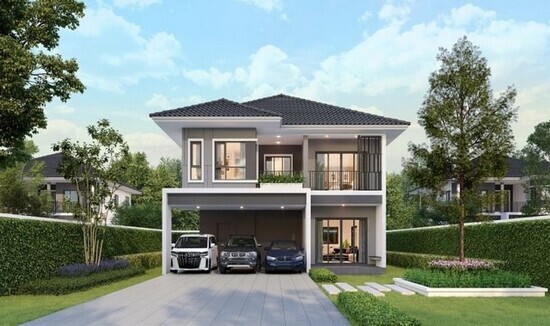 1. ศุภมัณฑิรา บ้านเดี่ยว 2 ชั้น พื้นที่ใช้สอย 417 ตร.ม. 5 ห้องนอน 6 ห้องน้ำ ที่จอดรถ 3 คัน