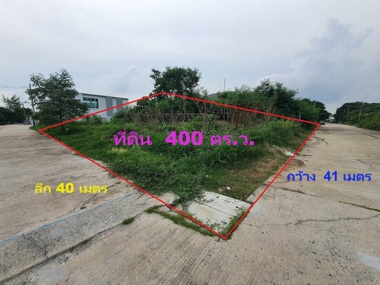 ขายถูกมากที่ดินสี่เหลี่ยมจัตุรัส มบ. ศรีเจริญวิลล่า 24 เทพารักษ์ ขนาด 400 ตร.ว. แปลงมุม ใกล้ รถไฟฟ้าสถานีสำโรงและศรีนครินทร์