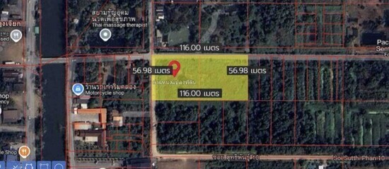 ขายที่ดินเปล่าแปลงมุม 4 ไร่ คลองหก หน้ากว้าง 116 เมตร ลึก 57 เมตร