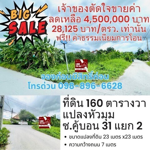 ขายที่ดิน160 ตารางวา วัชรพล รามอินทรา คู้บอน 31 แยก 2 ถนนคู้บอน-รามอินทรา
