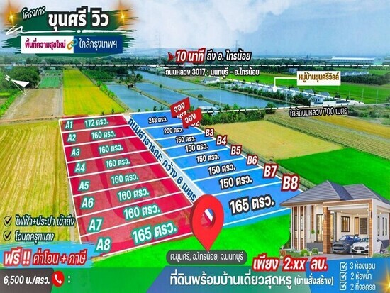 กู้แบงค์ 100% สั่งสร้างบ้านได้ตามฝัน บนเนื้อที่เริ่มต้น 150 ตรว. 2.99ลบ. ขุนศรี ไทรน้อย ด่วนใกล้จะหมดแล้ว