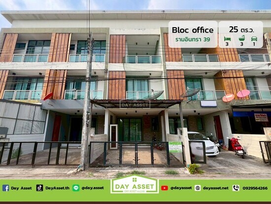 ขายทาวน์โฮม 3 ชั้น บล็อก ออฟฟิศ รามอินทรา 39 แยก 9 : Bloc Office Ramintra 39 Yak 9 ทำเลดีการเดินทางสะดวกใกล้ ทางด่วนรามอินทรา-อาจณรงค์ และรถไฟฟ้าสายสีชมพู เนื้อที่ 25 ตร.ว. ขายเพียง 5,500,000 ล้านบาท