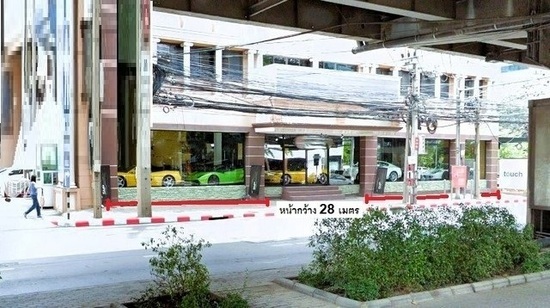 ประตูกระจกกว้างสามารถนำรถขึ้นมาจัดแสดงได้ และมีที่จอดรถรองรับลูกค้า