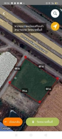 หน้ากว้างติดถนน หลัก 85 เมตร ลึกติดถนนซอย 66 เมตร ถนนซอยกว้าง 6 เมตร