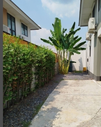 หมู่บ้านคณาสิริ วงแหวน ลำลูกกา ตกแต่งเพิ่มเติมบางส่วน มีเตียงครบทั้ง 3 ห้องนอน พร้อมแอร์ทั้งหลัง ถมดิน ปรับพื้นที่บ้าน ต่อเติมระเบียงหลังห้องครัวและประตูบ้านสแตนเลสใหม่ ถนนหน้าบ้าน