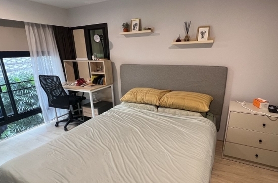 คอนโด 2 ชั้น ขนาดห้อง 46. 52ตร.ม+พื้นที่ใช้สอยต่อเติม 11 ตร.ม/ 2 ห้องนอน/ 1 ห้องน้ำ ตึก D ชั้น1