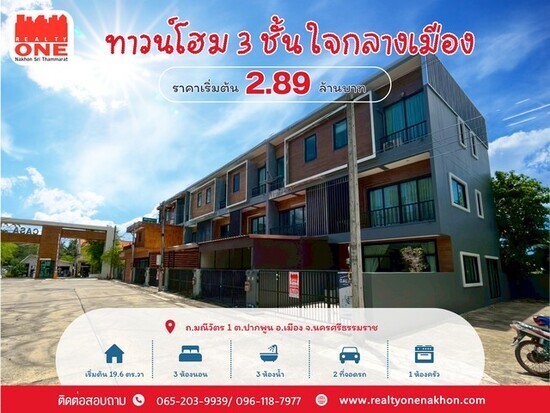 ทาวน์โฮม 3 ชั้น ทำเลเมืองนครฯ ใกล้สนามกีฬา อบจ.