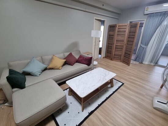 ห้องนี้พิเศษกว่าห้องอื่นๆ ในโครงการ เพราะมีการตกแต่งใหม่ในหลายจุด เช่น พื้นห้อง ห้องน้ำ และติดแอร์อินเวอร์เตอร์ ช่วยประหยัดไฟกว่าแอร์ที่โครงการแถมมา