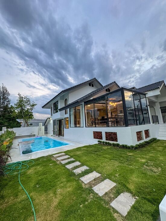 ให้เช่า 65,000 บาท/เดือน ขาย 12.5 ล้าน 130 ตรว. บ้านพูลวิลล่า #แม่เหียะ #หลังหัวมุม โล่ง โปร่ง วิวสวย #ใกล้สนามบิน #ไม่รับสัตว์เลี้ยง