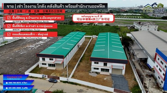ขายโรงงานสำเร็จรูป Warehouse พร้อมอาคารออฟฟิต จังหวัดสมุทรสาคร ขอใบ รง.4 ไว้ให้แล้ว