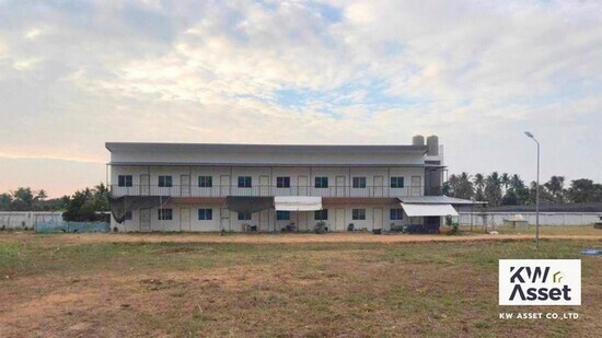 บ้านพักคนงาน 8 ห้อง 2 ชั้นๆ พร้อมถังสำรองน้ำคิว 2 ถัง หลังคามุงด้วยวัสดุ PU Metal Sheet หนา 1 นิ้ว และมีห้องน้ำในตัวทุกห้อง