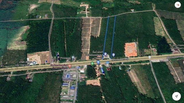 แปลงสวย ทำเลดีมาก ติดถ.เพชรเกษม มีต้นยางอายุ10ปี มีผู้เช่า(ปั๊มน้ำมัน)