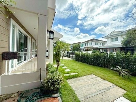 Rama9 OnNut BanThapChang Airport. 2km. 2-story corner house for rent 84sq.wa. 250sq.m. 74,999 B-M.Fully furnished. 500 m. from Chularat 7 Hospital. 3 bed 3 bath 2.2 km.from The Paseo Mall. Unico Golf Course SuanLuang Rama IX On Nut Road. Located on Prawet Canal.Nantawan