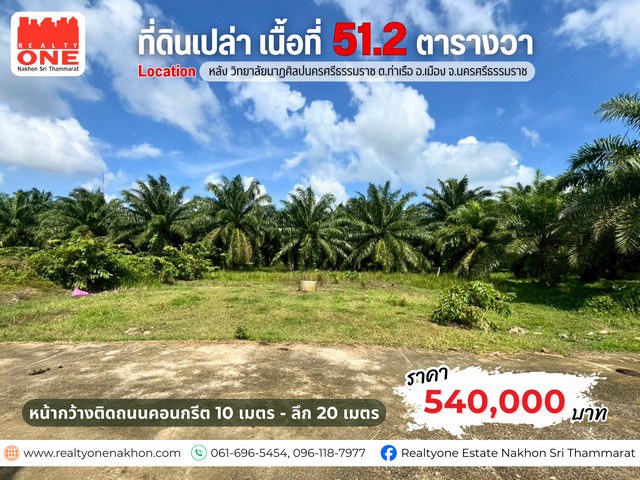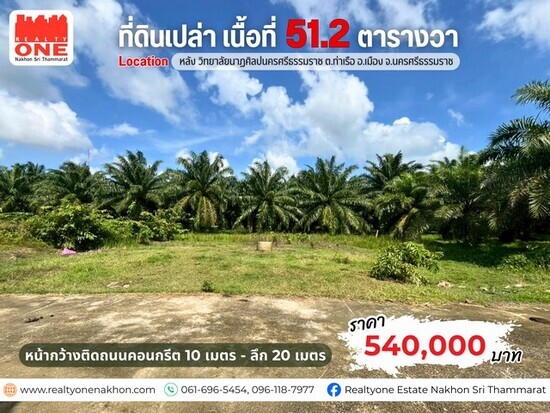 ที่ดินเปล่าแปลงสวย 51.2 ตารางวา ทำเลดี ใกล้เมืองนครศรีฯ ราคาสุดคุ้ม