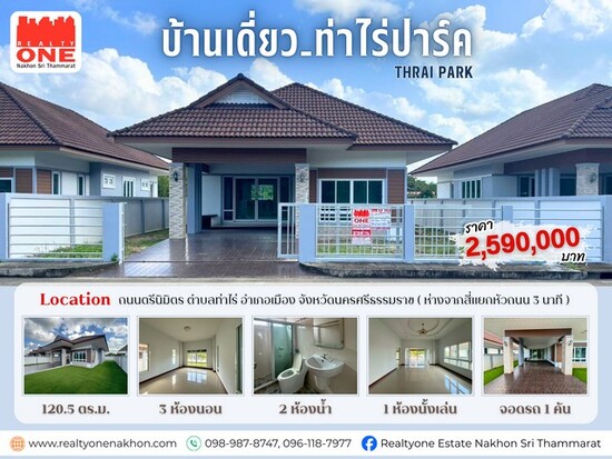 ท่าไร่ปาร์ค บ้านเดี่ยว เนื้อที่ 78 ตารางวา อยู่อาศัยสบาย เดินทางสะดวก ใกล้เมืองนครศรีฯ