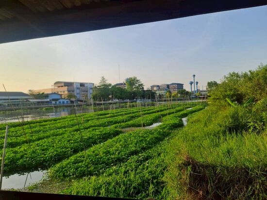 An exceptional riverside land opportunity located at the end of Krisadanakorn 27 Marina Village, Hom Kret, Sam Phran, Nakhon Pathom. This peaceful waterfront setting offers beautiful river views and excellent potential for a private residence, boutique resort, or long-term investment.