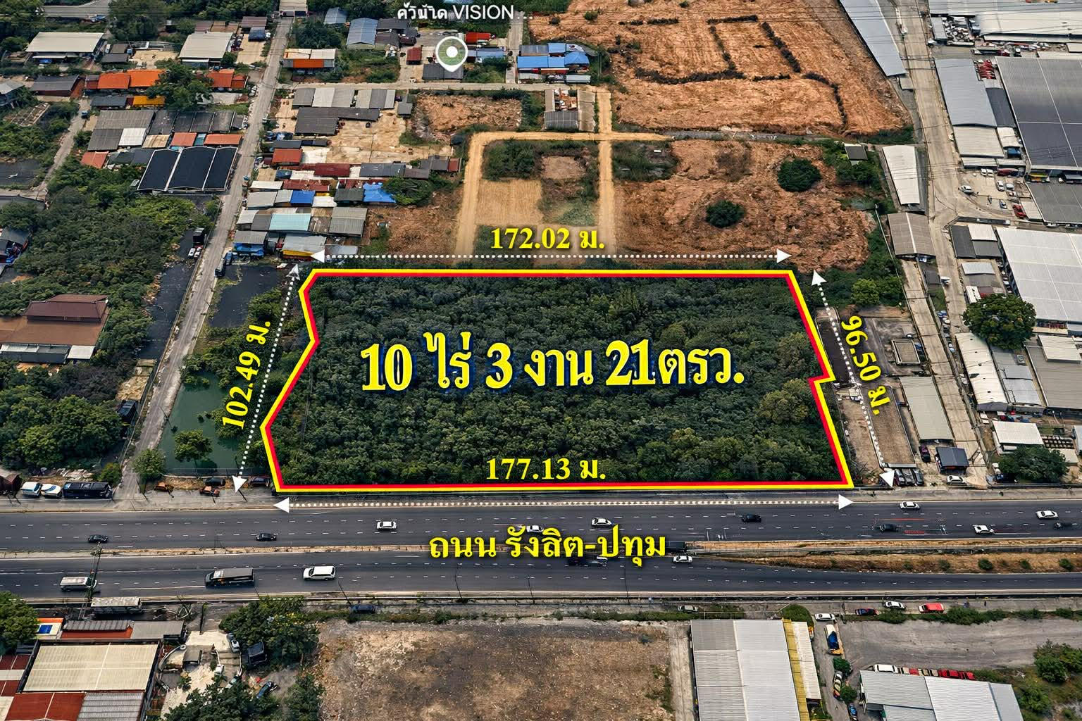 หน้าติดถนนปทุม–รังสิต กว้าง 177.13 เมตร